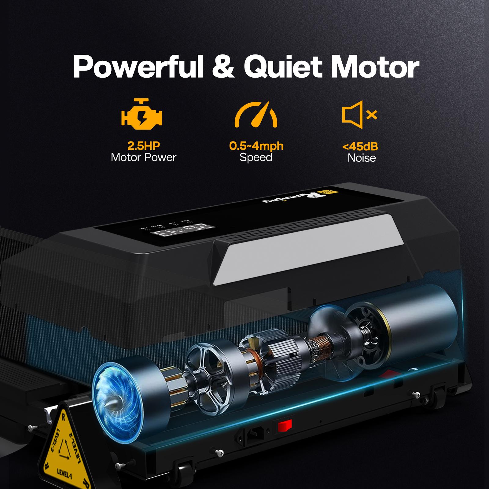 【2.5HP Powerful Quiet Motor & Shock Reduction System】This electric treadmill With a 2.5 HP powerful quiet Motor is perfect for jogging, and walking in the home or office. With a durable steel frame and multi-layer shield design, the under-desk treadmill's shock absorbing and noise reducing, making your running quieter, safer and more comfortable.